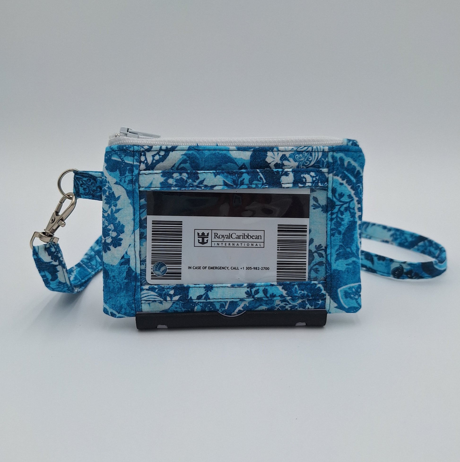 This handy little wallet features a zippered pocket and a clear window pocket, on a 19 inch lanyard.