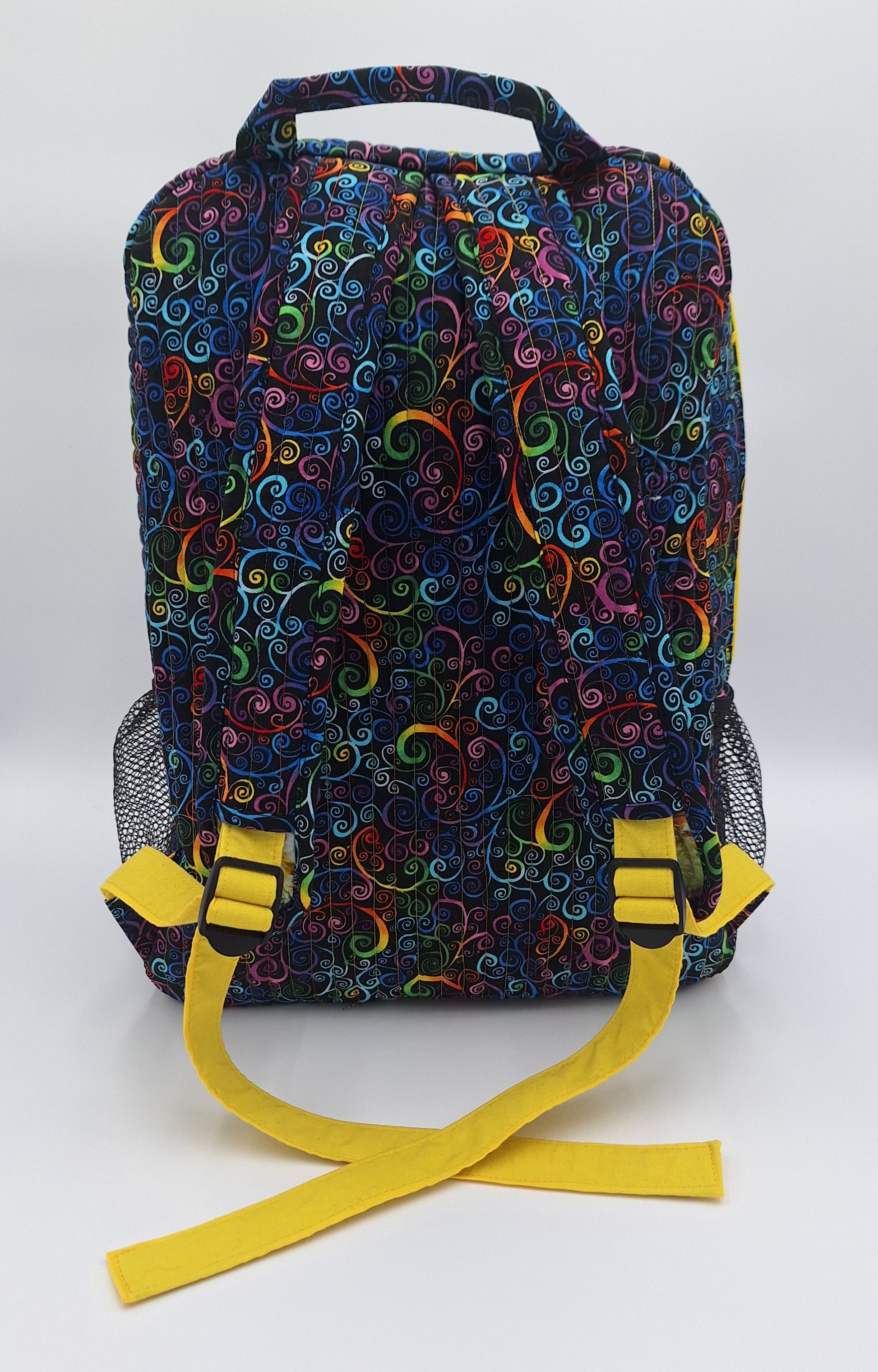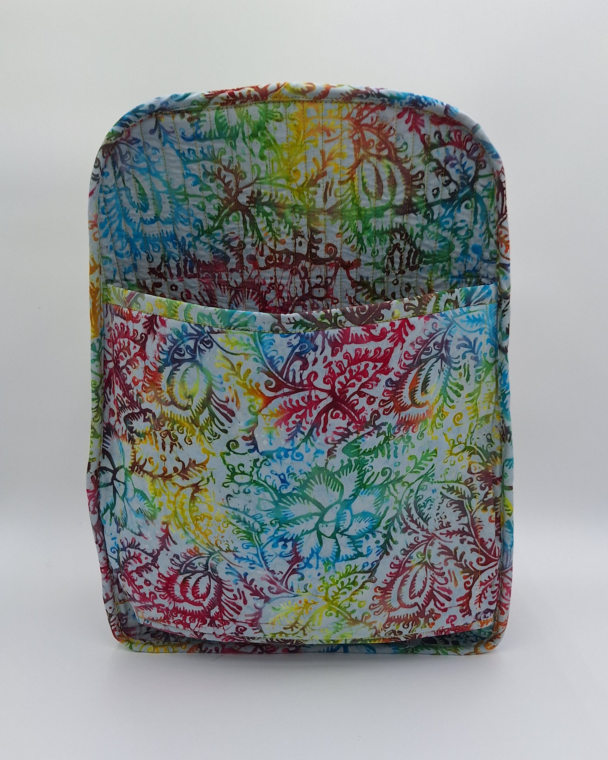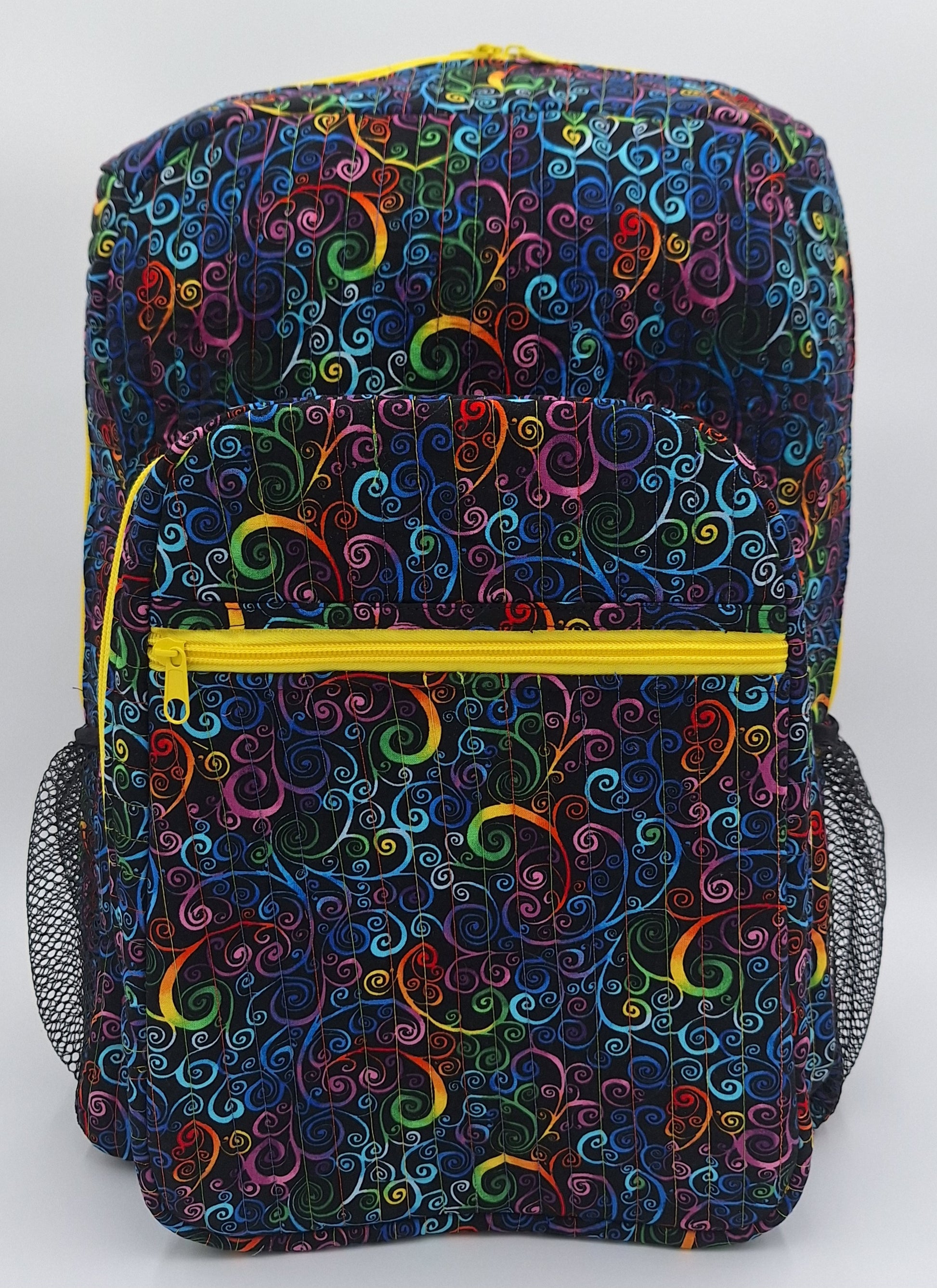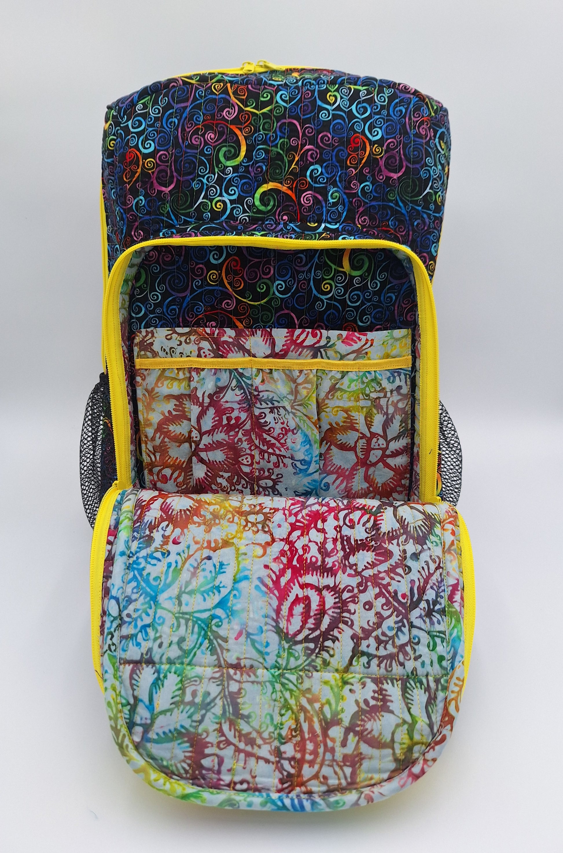 Features include multiple slip and zippered pockets, padded straps, a reinforced grab handle, and a padded sleeve to hold binders, books, or electronic devices.